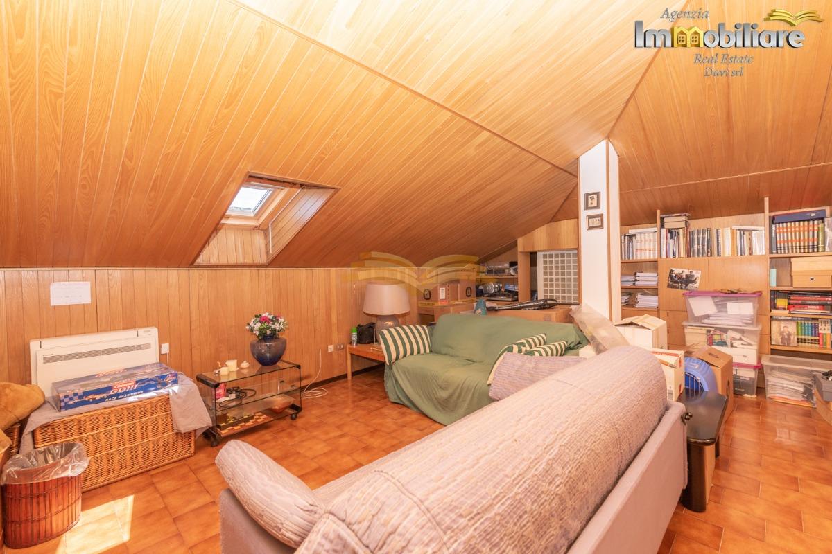 Accedendo alla mansarda attraverso una scala a chioccola in legno situata all'ingresso si trovano un'ampia stanza, uno spazioso ripostiglio attualmente adibito a camera da letto, un ripostiglio più piccolo attualmente adibito a lavanderia e un bagno; la presenza di lucernari in ogni stanza rende questa mansarda molto luminosa.