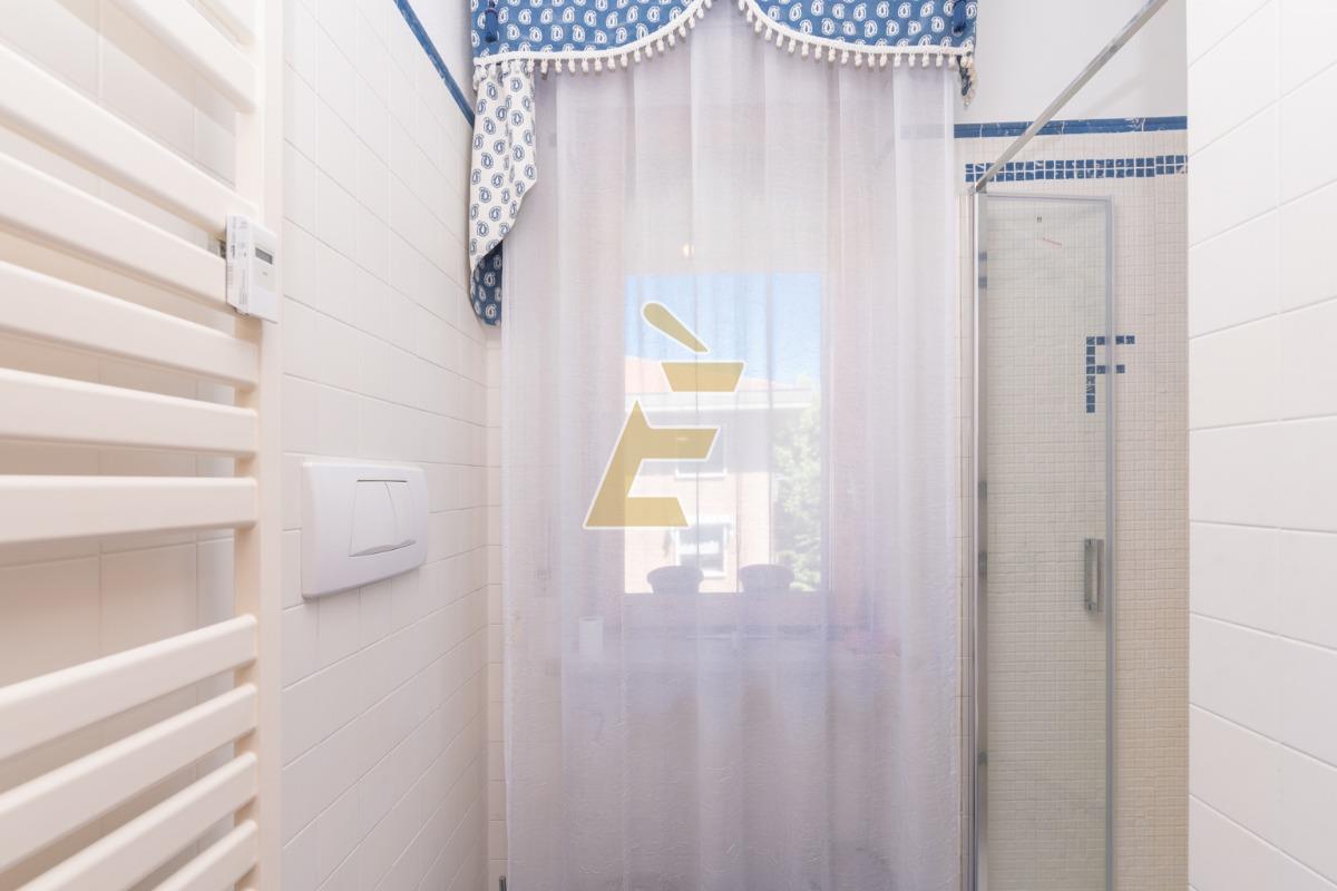 L'appartamento è dotato di infissi esterni in legno e doppio vetro con zanzariere, porta d'ingresso blindata, condizionatori, cantina e box auto doppio. Pavimento di camere da letto, sala e ingresso in parquet. Cancello elettrico con passo carraio. Giardino condominiale.