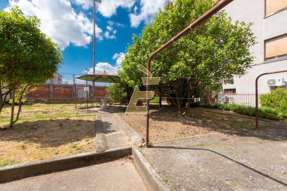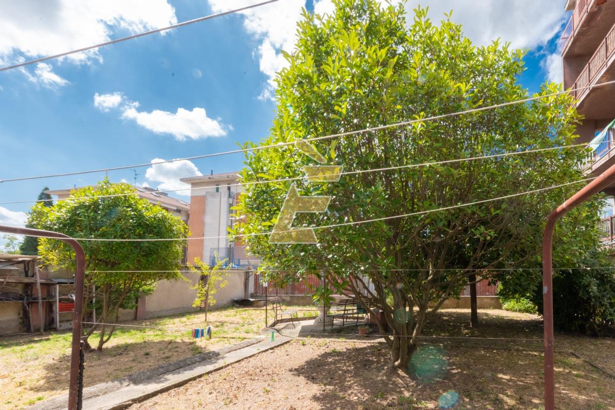 Presente giardino condominiale con zona relax con panchine.