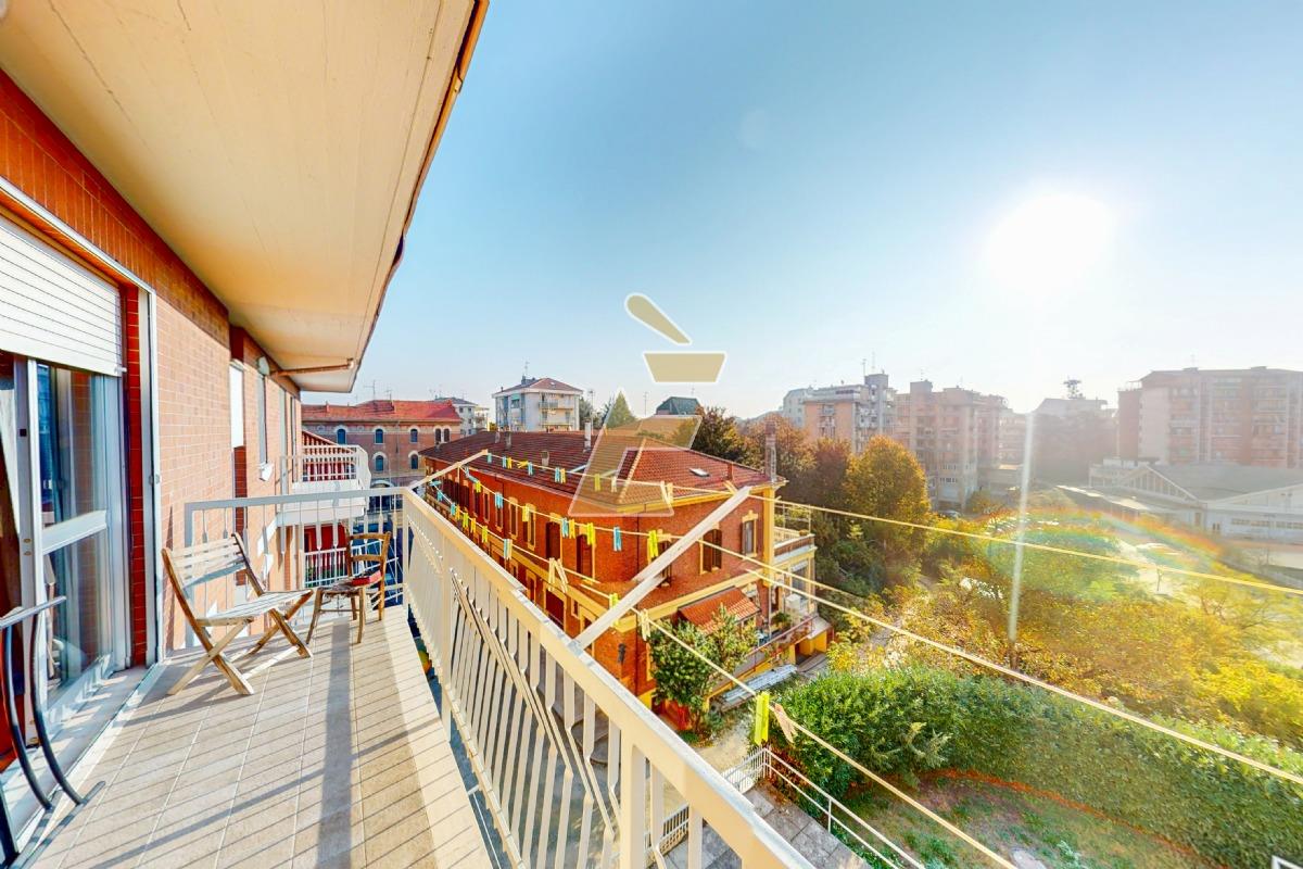 L'appartamento, in buone condizioni, è così composto: ingresso su luminoso soggiorno con balcone affacciato sui Giardini Camurati, cucina abitabile con secondo balcone, camera da letto matrimoniale, cameretta/studio, bagno finestrato con vasca doccia e bagno di servizio. Sono compresi cantina e solaio.