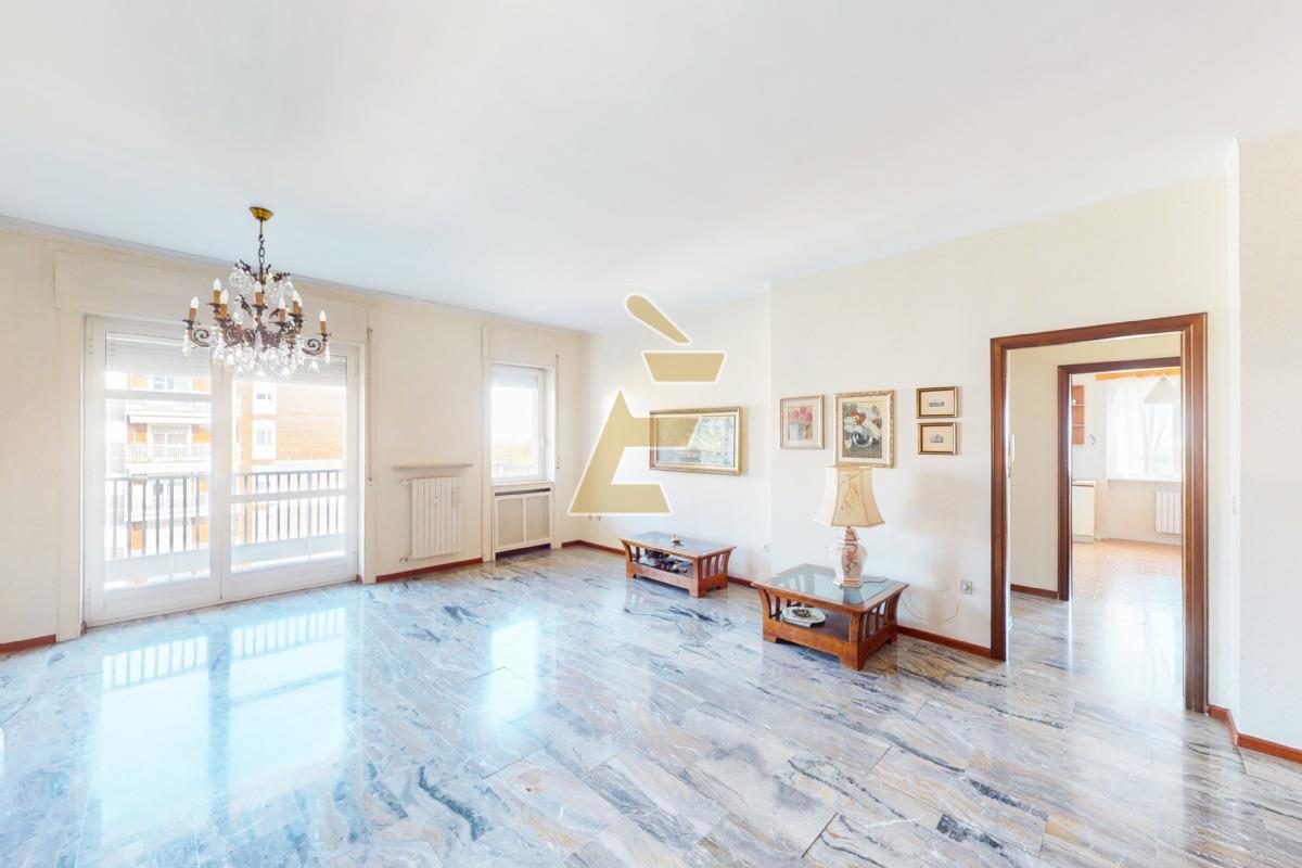 Valenza, viale Vicenza, appartamento di mq 122 sito al quarto piano con ascensore. La soluzione, che si presenta in ottime condizioni, è così composta: ingresso su salone con balcone, corridoio, cucina abitabile, due camere da letto con pavimenti in parquet, doppi servizi entrambi con finestra, comodo ripostiglio a muro. Gli infissi sono in alluminio con doppio vetro e zanzariere; sul balcone è presente la tenda da sole.