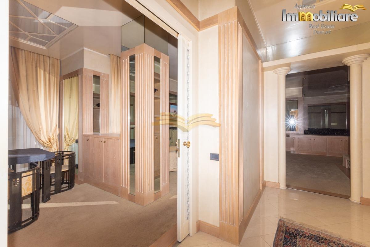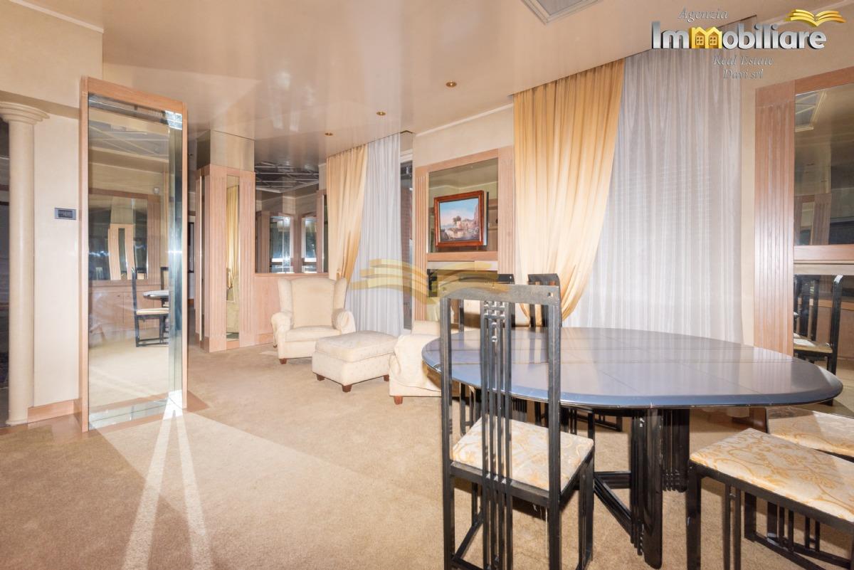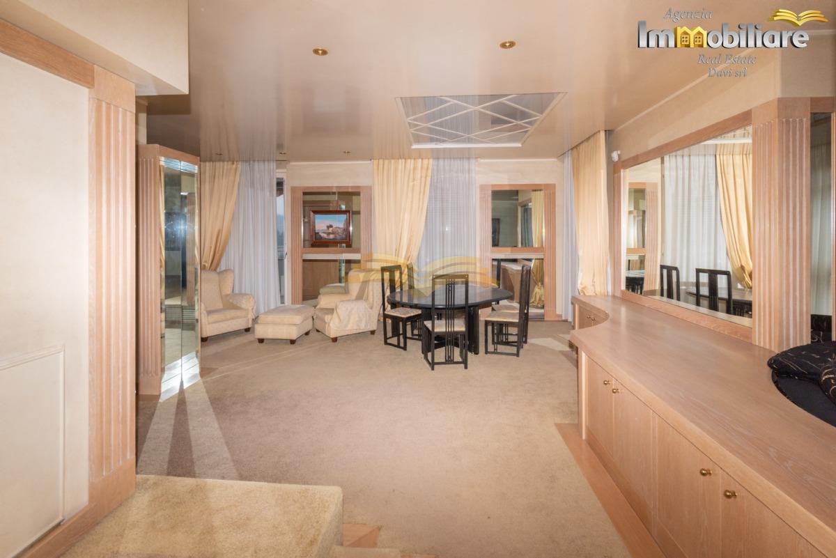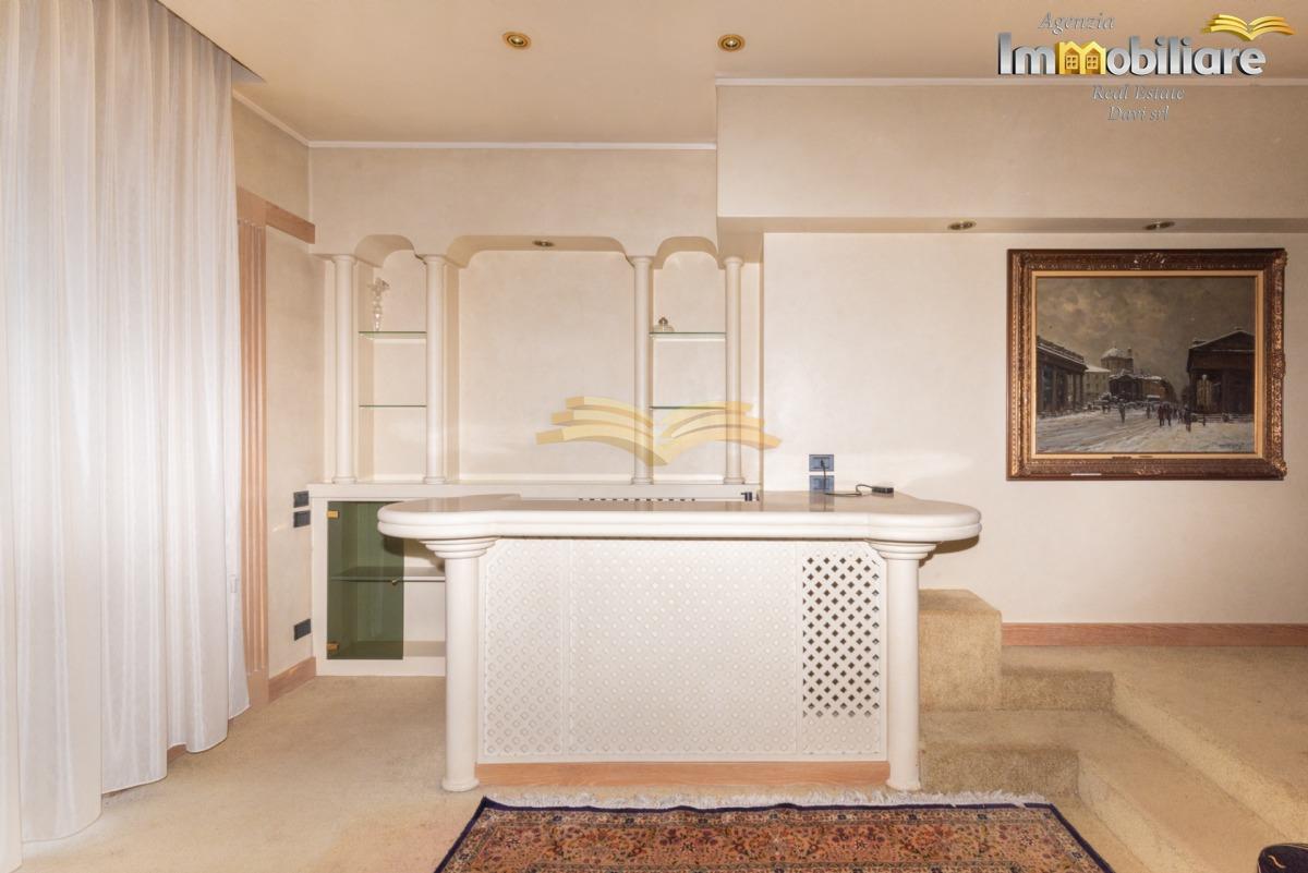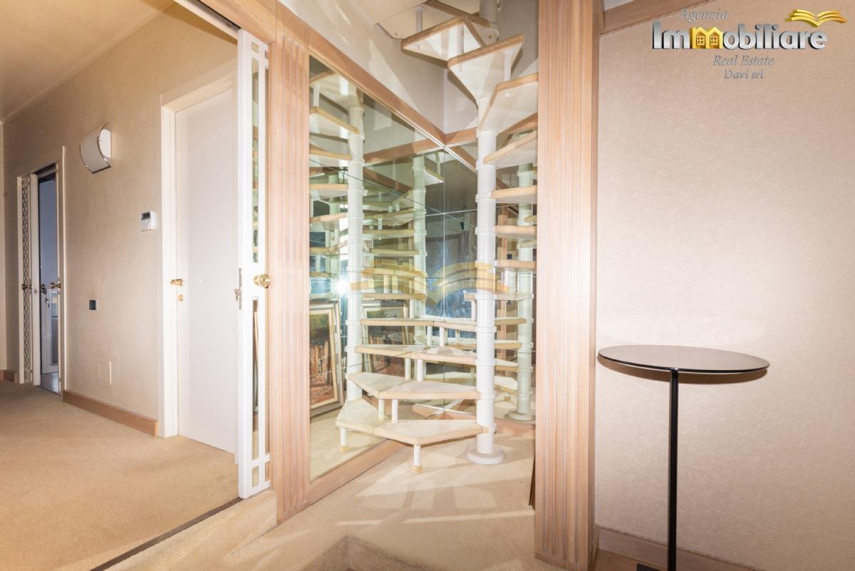 Valenza, viale Cellini, attico di mq 315 sito al quarto e ultimo piano con ascensore. L'appartamento, libero su quattro lati è così composto: ingresso con porta blindata su comodo disimpegno, sala da pranzo, cucina abitabile, salone, bagno di servizio con lavanderia, zona bar, soggiorno, studio, camera da letto matrimoniale con cabina armadio, bagno finestrato con vasca idromassaggio, camera da letto matrimoniale con bagno privato con vasca. Una scala a chiocciola conduce a una seconda cabina armadio.
