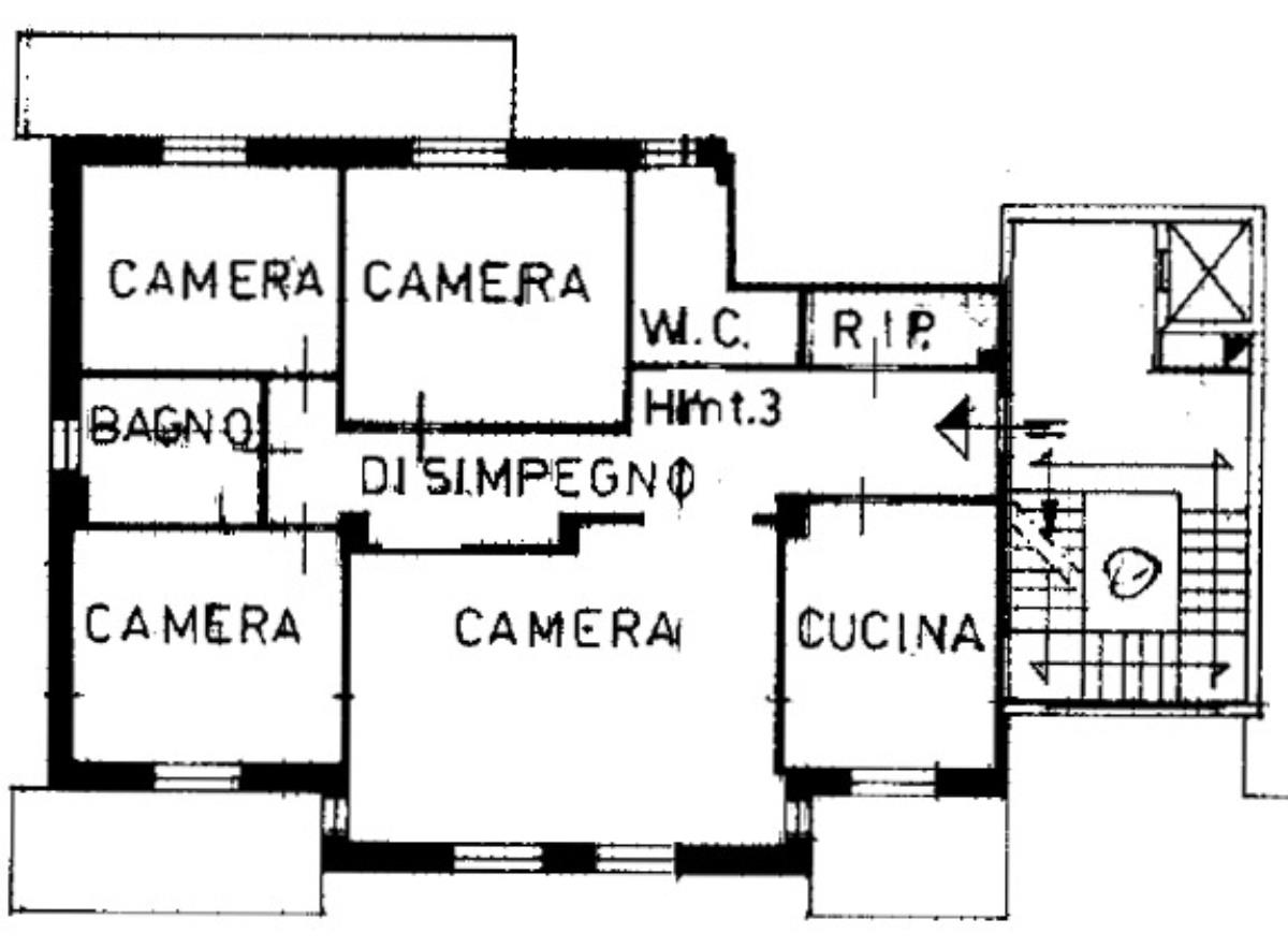 La soluzione, che si presenta in buone condizioni, è così disposta: ingresso con comodo ripostiglio, cucina abitabile con balcone, luminoso salone con doppio accesso ai balconi, bagno finestrato con doccia, tre camere da letto tutte con accesso esterno ai balconi e secondo bagno finestrato con vasca.