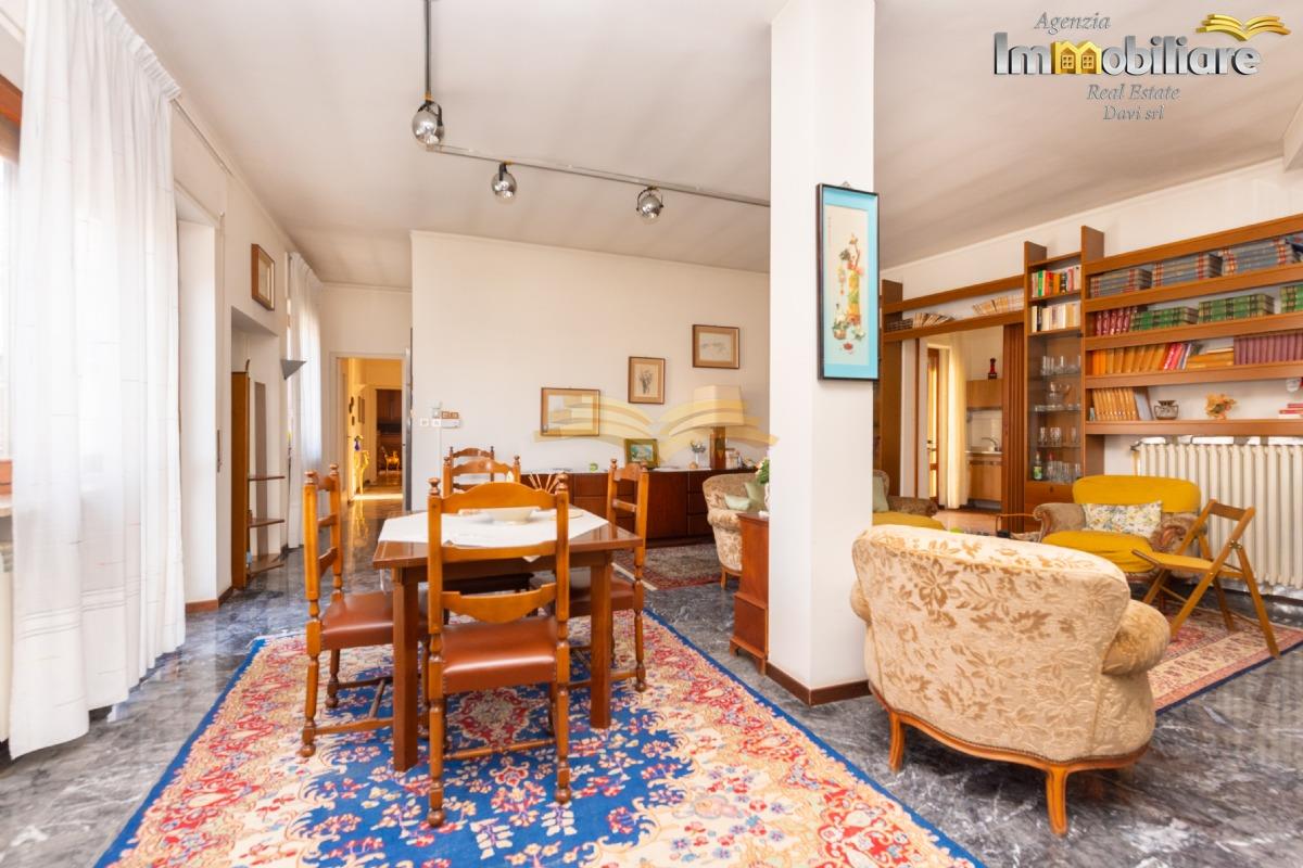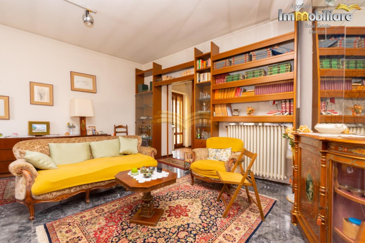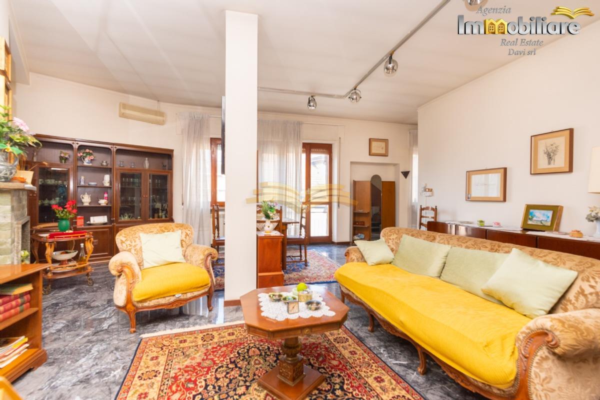 L’appartamento principale si trova al primo piano e ha una superficie di circa 118 mq. Gli ambienti risultano ampi e luminosi e comprendono un soggiorno di generose dimensioni, una cucina abitabile con accesso al balcone, due camere da letto e un bagno finestrato. La distribuzione degli spazi e le numerose aperture garantiscono un’ottima luminosità naturale.