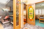 L’abitazione principale presenta ambienti ampi e ben distribuiti. Gli interni conservano spazi luminosi, con soggiorno, sala da pranzo, cucina abitabile, camera da letto e bagno finestrato e servizi. Alcuni elementi decorativi, come le porte con vetri lavorati e i dettagli architettonici interni, conferiscono carattere agli ambienti.