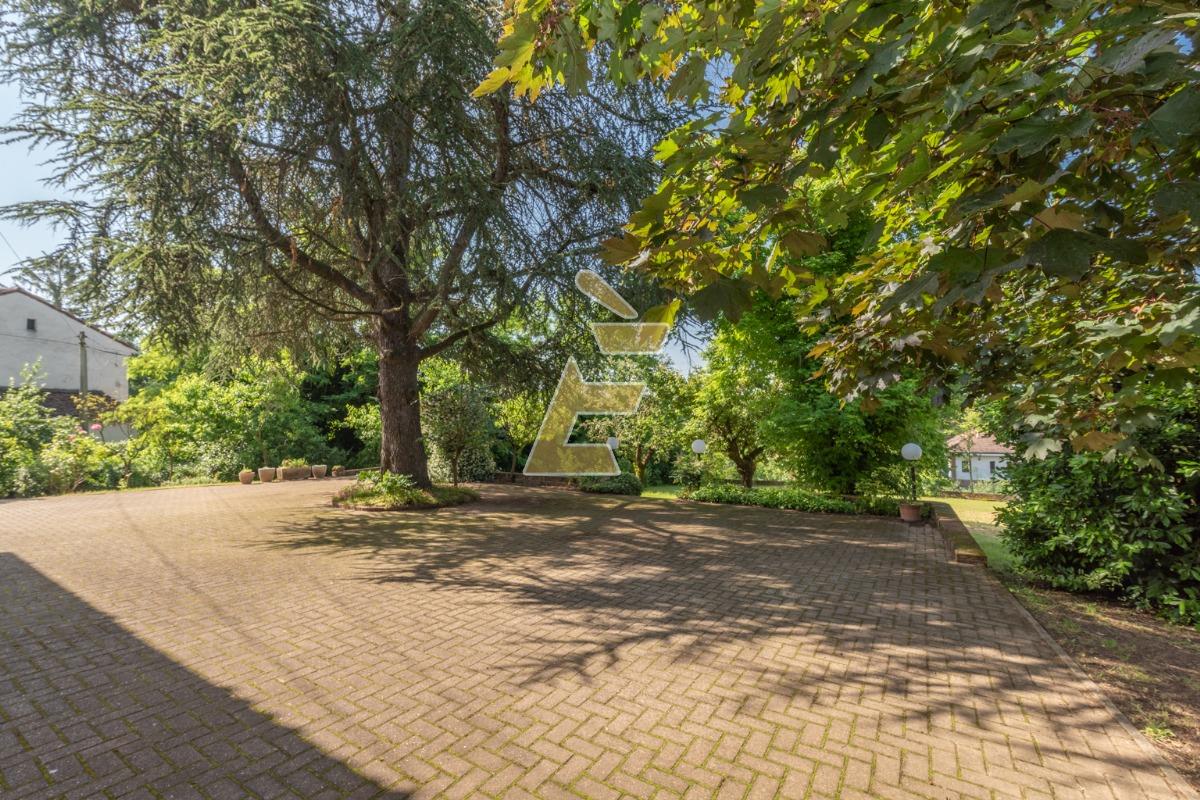 Davanti alla facciata principale un comodo cortile che gode dell'ombra di diverse piante; da qui si accede al giardino e al terreno circostanti per un totale di mq 3510, dove attualmente si trovano altri alberi da frutta.