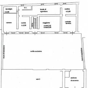 L’abitazione principale si sviluppa su due livelli. Al piano terra veniamo accolti da una zona giorno luminosa e da ampie stanze che conservano il fascino delle case di una volta: cucina abitabile, ampio soggiorno e una stanza che comunica internamente con un grande locale deposito situato sul retro: questo spazio, dotato anche di un pratico wc e di un accesso diretto dal cortile, si presta a molteplici usi, come ricovero attrezzi o magazzino.
