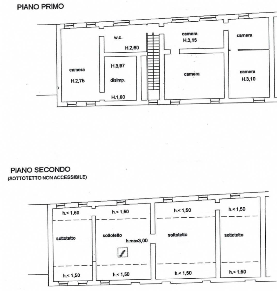 Salendo al piano superiore, la zona notte offre tre camere da letto dalle dimensioni introvabili nelle moderne costruzioni, garantendo aria e luce in ogni angolo; è possibile ricavare una pratica cabina armadio.