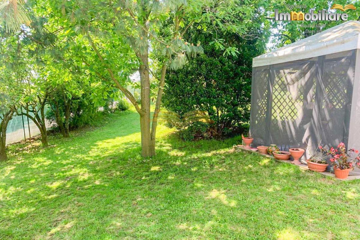 All’esterno il giardino, ampio e curato, offre molteplici possibilità di utilizzo: area relax, spazio giochi o zona conviviale attorno al gazebo di 5x5 metri, ideale per pranzi e cene all’aperto.